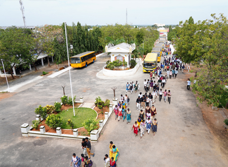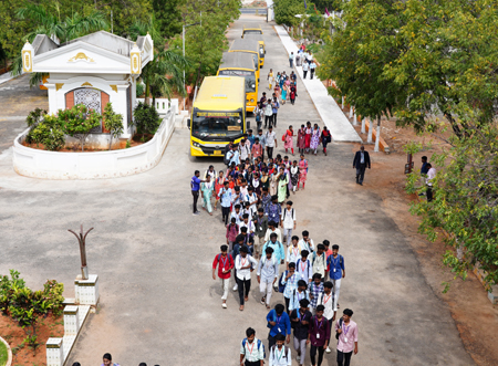 The college operates a fleet of buses connecting Trichy city and nearby towns with the campus at Konalai. These buses ensure safe, reliable, and punctual transportation for students and staff, reducing the burden of travel and promoting regular attendance.